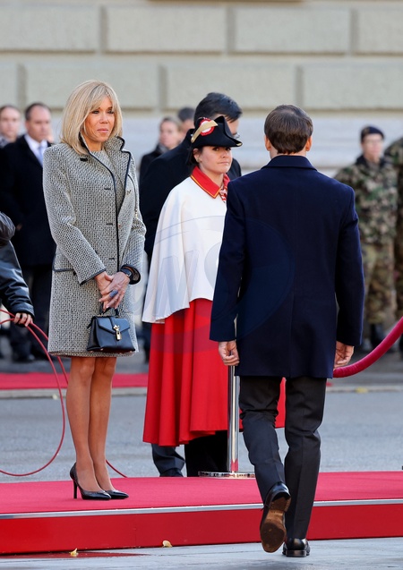 powitanie prezydenta Emmanuela Macrona i Brigitte Macron na Placu Federalnym w Bernie w Szwajcarii