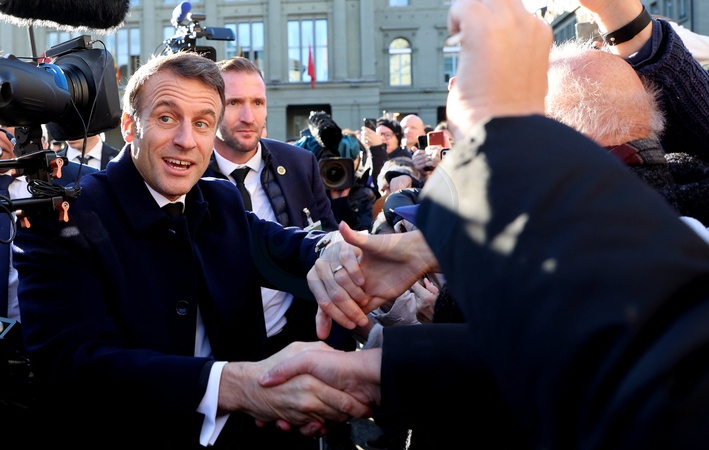powitanie prezydenta Emmanuela Macrona i Brigitte Macron na Placu Federalnym w Bernie w Szwajcarii