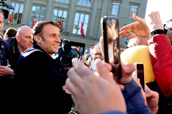 powitanie prezydenta Emmanuela Macrona i Brigitte Macron na Placu Federalnym w Bernie w Szwajcarii