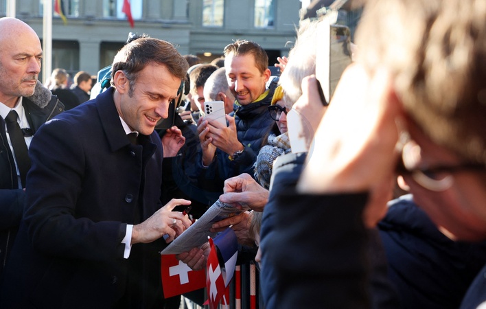 powitanie prezydenta Emmanuela Macrona i Brigitte Macron na Placu Federalnym w Bernie w Szwajcarii