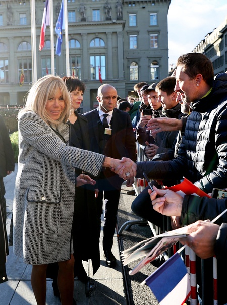 Cérémonie d'accueil du président Emmanuel Macron et de sa femme Brigitte Macron sur la place fédérale de Berne, Suisse