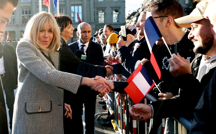 powitanie prezydenta Emmanuela Macrona i Brigitte Macron na Placu Federalnym w Bernie w Szwajcarii