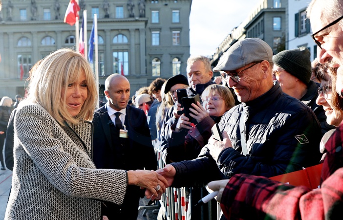 powitanie prezydenta Emmanuela Macrona i Brigitte Macron na Placu Federalnym w Bernie w Szwajcarii