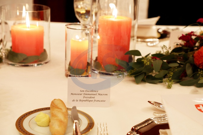 Uroczysta kolacja na cześć prezydenta Emmanuela Macrona i jego żony Brigitte Macron wydana przez Prezydenta Konfederacji Szwajcarskiej w Bernie