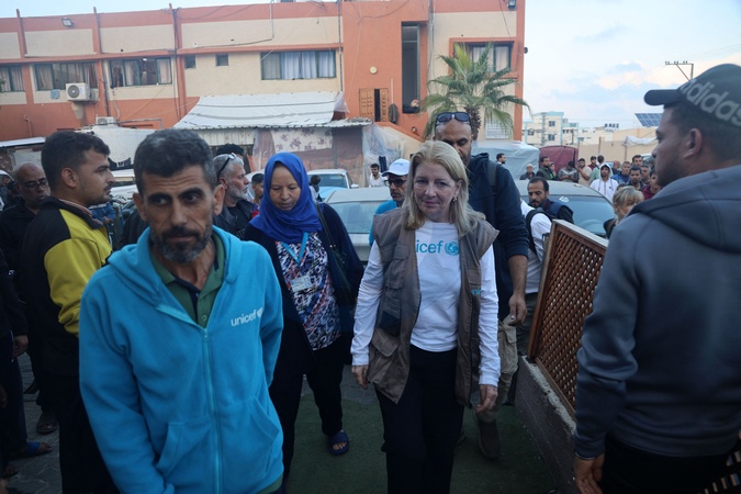 Catherine Russell, UNICEF Executive Director, and Ted Chaiban, UNICEF Deputy Executive Director for Humanitarian Action and Supply Operations, visit Al Naser Hospital in Khan Younis in southern Gaza Strip on 14 November 2023. Statement by UNICEF Executive Director Catherine Russell on her visit to Gaza GAZA, 15 November 2023 – "Today I visited the Gaza Strip to meet with children, their families and UNICEF staff. What I saw and heard was devastating. They have endured repeated bombardment, loss and displacement. Inside the Strip, there is nowhere safe for Gaza's one million children to turn. "The parties to the conflict are committing grave violations against children; these include killing, maiming, abductions, attacks on schools and hospitals, and the denial of humanitarian access – all of which UNICEF condemns. "In Gaza, more than 4,600 children have reportedly been killed, with nearly 9,000 reportedly injured. "Many children are missing and believed buried under the rubble of collapsed buildings and homes, the tragic result of the use of explosive weapons in populated areas. Meanwhile, newborn babies who require specialized care have died in one of Gaza's hospitals as power and medical supplies run out, and violence continues with indiscriminate effect. "At the Al Naser hospital in Khan Yunis, I met with patients and displaced families seeking shelter and safety. A 16-year-old girl told me from her hospital bed that her neighborhood had been bombed. She survived but doctors say she will never be able to walk again. "In the hospital's neonatal ward, tiny babies were clinging to life in incubators, as doctors worried how they could keep the machines running without fuel. "During my time in Gaza, I also met with UNICEF staff who are continuing to deliver for children amidst the danger and devastation. They shared their own heartbreaking stories with me of the impact of the war on their children, of family members killed, and of how they have been displaced many times over. "Many people, including our staff and their families, are now living in overcrowded shelters with very little water, food or decent sanitation – conditions which could lead to disease outbreaks. "The risk to humanitarian actors inside Gaza cannot be overstated. More than 100 UNRWA staff have been killed since October. "UNICEF and our partners are doing everything we can, including bringing in desperately needed humanitarian supplies. But diesel fuel has practically run out, causing some hospitals and health centers to stop functioning. Without fuel, desalination plants cannot produce drinking water and humanitarian supplies cannot be distributed. "The intermittent opening of Gaza's border crossings to shipments of humanitarian supplies is insufficient to meet the skyrocketing needs. And with winter around the corner, the need for fuel could become even more acute. When I left Gaza today, the rain was pounding down, adding to the misery. "I am here to do whatever I can to advocate for the protection of children. I once again call on all parties to ensure that children are protected and assisted, as per international humanitarian law. Only the parties to the conflict can truly stop this horror. "I also call on the parties to implement an immediate humanitarian ceasefire, to safely release all abducted and detained children, and to ensure that humanitarian actors have safe, sustained and unimpeded access to reach those in need with the full range of lifesaving services and supplies.” © UNICEF via Bestimage