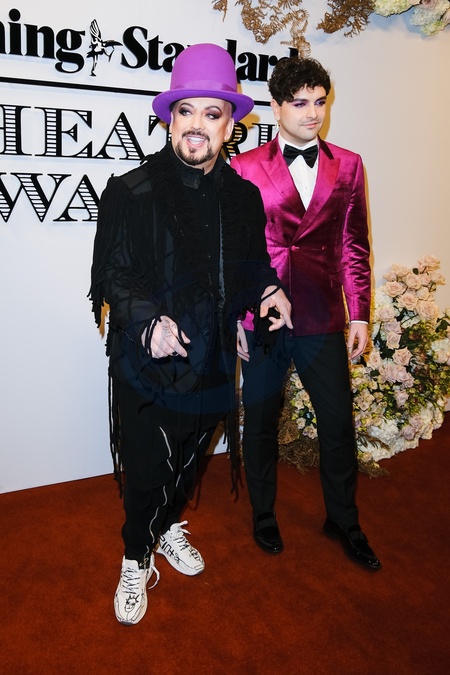 Boy George and Vangelis Polydorou photographed arriving at the Evening Standard Theatre Awards held at Claridge's in London, UK on 19 November 2023., Credit:Julie Edwards / Avalon