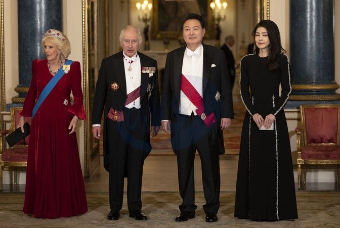 King Charles III and Queen Camilla with the President and First Lady of South Korea at a State Banquet at Buckingham Palace in London on the first day of their State Visit to the United Kingdom. London, UK, 21 November 2023, Credit:Stephen Lock / i-Images / Avalon