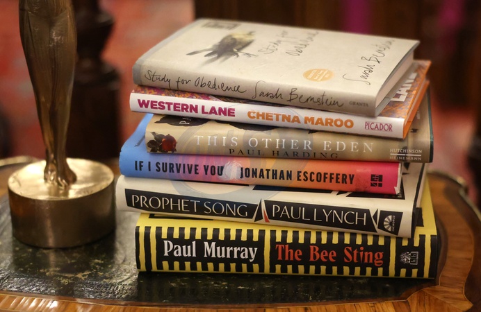 A general view of the six shortlisted books during the Booker Prize Foundation reception hosted by Queen Camilla at Clarence House on November 23, 2023 in London, England.NO UK USE FOR 48 HOURS, Credit:Avalon.red / Avalon