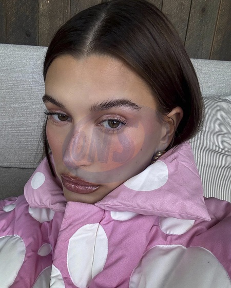Screenshot of Hailey Bieber, latest post on social media, 22nd November 2023.Quote:"my birthday peptide lip tint in flavor jelly bean comes out tomorrow at 9am pst @rhode", Credit:B4859 / Avalon
