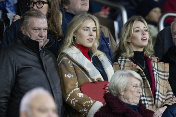 Charles de Bourbon des Deux-Siciles, Maria-Chiara de Bourbon des deux Siciles et Maria-Carolina de Bourbon des deux Siciles dans les tribunes lors du match de Ligue 1 Uber Eats "PSG - Monaco (5-2)" au Parc Des Princes, le 24 novembre 2023. © Cyril Moreau/Bestimage Celebrities in the stands during the match of Ligue 1 Uber Eats "PSG - Monaco (5-2)" at the Parc des Princes. Paris, November 24th, 2023.