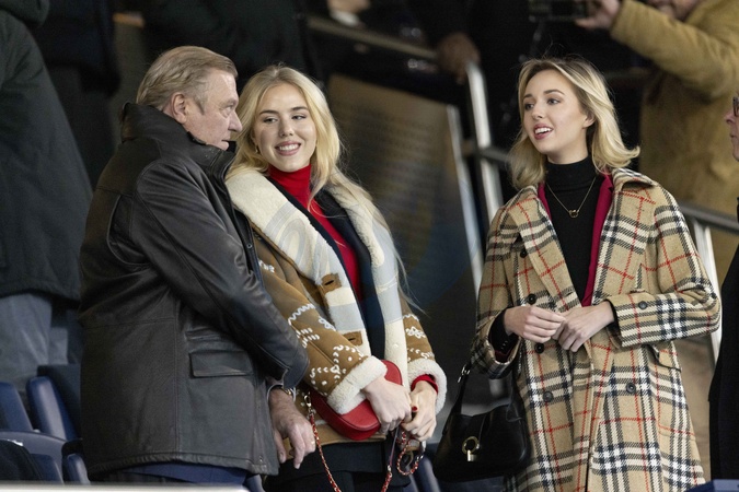 Charles de Bourbon des Deux-Siciles, Maria-Chiara de Bourbon des deux Siciles et Maria-Carolina de Bourbon des deux Siciles dans les tribunes lors du match de Ligue 1 Uber Eats "PSG - Monaco (5-2)" au Parc Des Princes, le 24 novembre 2023. © Cyril Moreau/Bestimage Celebrities in the stands during the match of Ligue 1 Uber Eats "PSG - Monaco (5-2)" at the Parc des Princes. Paris, November 24th, 2023.