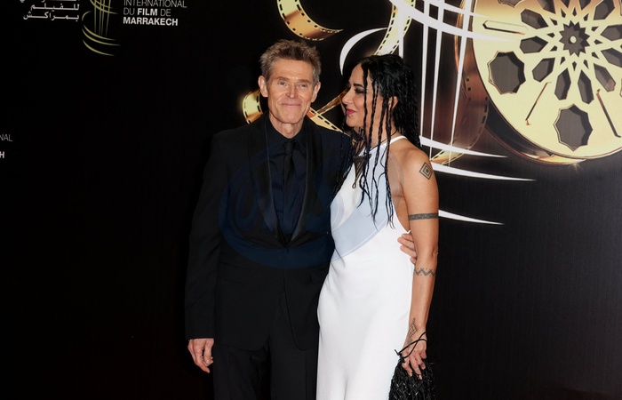 Willem Dafoe et sa femme Giada Colagrande au photocall de la cérémonie d'ouverture et de la projection du film "Hit Man" lors du 20ème Festival International du Film de Marrakech, Maroc, le 24 novembre 2023. © Dominique Jacovides/Bestimage Celebs attending the opening ceremony and screening of "Hit Man" during the 20th Marrakech International Film Festival on November 24, 2023 in Marrakech, Morocco.