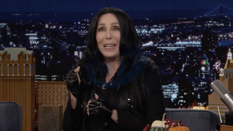 Pictures MUST credit: NBC Superstar singer Cher stayed cool on a TV chat show — by enjoying a giant frozen hot chocolate dessert. The 77-year-old I Believe veteran hit maker wore all black including fingerless gloves for her appearance as a guest of Jimmy Fallon. She was there to plug her new Christmas album. Fallon asked her what she likes to do when she comes to New York where the chat show is filmed. She revealed a restaurant called Serendipity 3 which is renowned for its desserts which included giant ice cream sundaes. She added:” I've been going there since I was 19. It's one of my favourite spots.”