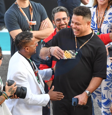 `Ronaldo Nazário and Patrice Evra on the grid prior to the F1 Grand Prix of Abu Dhabi at Yas Marina Circuit on November 26, 2023 in Abu Dhabi, United Arab Emirates, Credit:Jules Annan / Avalon