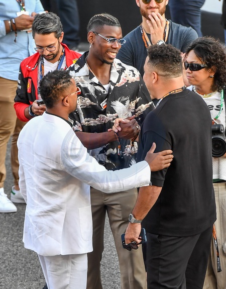 `Ronaldo Nazário, Patrice Evra and Paul Pogba on the grid prior to the F1 Grand Prix of Abu Dhabi at Yas Marina Circuit on November 26, 2023 in Abu Dhabi, United Arab Emirates, Credit:Jules Annan / Avalon