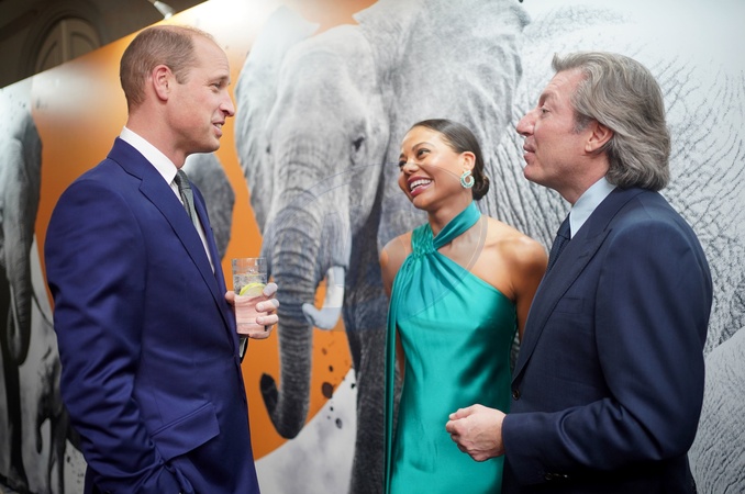 The Prince of Wales (left), speaks with Ceawlin Thynn, 8th Marquess of Bath (right) and Emma Thynn, Marchioness of Bath at the 11th annual Tusk Conservation Awards at the Savoy Hotel, London. Picture date: Monday November 27, 2023., Credit:Victoria Jones / Avalon