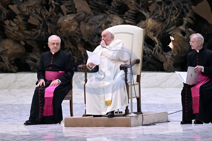 Leonardo Sapienza with Pope Francis during his Wednesday General Audience, Vatican City 29 November 2023, Credit:Maria Laura Antonelli / Avalon