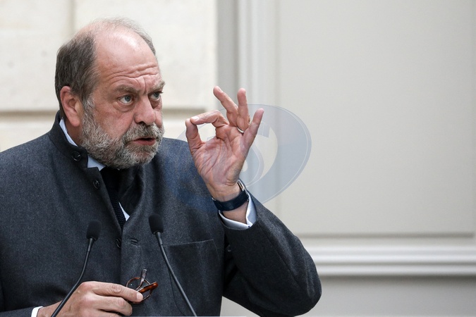 Info - Eric Dupond-Moretti, relaxé par la Cour de justice, à l'issue de son procès pour prise illégale d'intérêts - Eric Dupond-Moretti, ministre de la justice, garde des Sceaux donne une conférence de presse à l'issue du conseil des ministres du 28 avril 2021, au palais de l'Elysée à Paris, France. © Stéphane Lemouton/Bestimage French Prime Minister, French Minister of the Interior and French Minister of Justice, give a press conference after the Council of Ministers, at the Elysee Palace in Paris, France, on April 28, 2021.