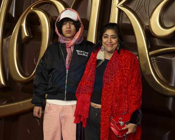 Ronak Berges and Gurinder Chadha at the Wonka World Premiere at Royal Festival Hall in Waterloo, London, United Kingdom on 28 November 2023., Credit:Cat Morley / Avalon