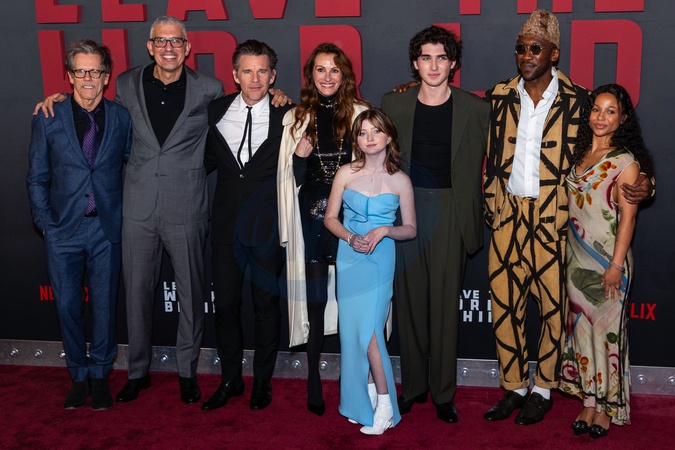 MANHATTAN, NEW YORK CITY, NEW YORK, USA - DECEMBER 04: Kevin Bacon, Sam Esmail, Ethan Hawke, Julia Roberts, Farrah Mackenzie, Charlie Evans, Mahershala Ali and Myha'la Herrold arrive at the New York Premiere Of Netflix's 'Leave The World Behind' held at The Paris Theater on December 4, 2023 in Manhattan, New York City, New York, United States., Credit:Christian Lora / Avalon
