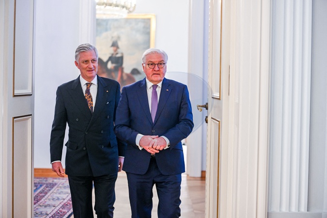 Le roi Philippe et la reine Mathilde de Belgique lors de leur visite officielle en Allemagne, le 5 décembre 2023. © Frédéric Andrieu/Bestimage Her Majesty The King Philippe and the Queen Mathilde take part of the State visit in Federal Republic of Germany for three days. HM the King & President Steinmeier: Extended meeting between the German delegation & the Belgian delegation Attending Ministers: HE Hadja Lahbib, HE Rudi Vervoort, HE Pierre- Yves Jeholet, HE Oliver Paasch, HE Hilde Crevits and HE Philippe Henry © F.Andrieu / Agencepeps