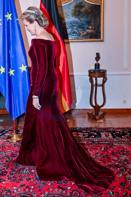 Le roi Philippe de Belgique et la reine Mathilde lors d'un dîner d'état à Berlin offert par Frank-Walter Steinmeier, président de l'Allemagne le 5 décembre 2023. Le couple royal de Belgique est en visite d'état en Allemagne pour trois jours. © Frederic Andrieu / Bestimage Belgium , Brussels, 05 december 2023 Her Majesty The King Philippe and the Queen Mathilde take part of the State visit in Federal Republic of Germany for three days. State banquet hosted by HE Frank-Walter Steinmeier, President of the Federal Republic of Germany, and Mrs. Elke Büdenbender, the First Lady