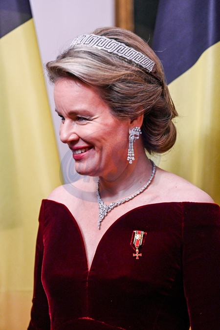 Le roi Philippe de Belgique et la reine Mathilde lors d'un dîner d'état à Berlin offert par Frank-Walter Steinmeier, président de l'Allemagne le 5 décembre 2023. Le couple royal de Belgique est en visite d'état en Allemagne pour trois jours. © Frederic Andrieu / Bestimage Belgium , Brussels, 05 december 2023 Her Majesty The King Philippe and the Queen Mathilde take part of the State visit in Federal Republic of Germany for three days. State banquet hosted by HE Frank-Walter Steinmeier, President of the Federal Republic of Germany, and Mrs. Elke Büdenbender, the First Lady