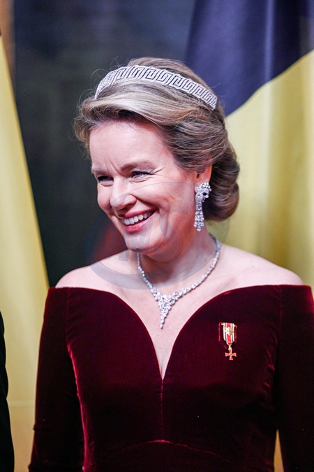 Le roi Philippe de Belgique et la reine Mathilde lors d'un dîner d'état à Berlin offert par Frank-Walter Steinmeier, président de l'Allemagne le 5 décembre 2023. Le couple royal de Belgique est en visite d'état en Allemagne pour trois jours. © Frederic Andrieu / Bestimage Belgium , Brussels, 05 december 2023 Her Majesty The King Philippe and the Queen Mathilde take part of the State visit in Federal Republic of Germany for three days. State banquet hosted by HE Frank-Walter Steinmeier, President of the Federal Republic of Germany, and Mrs. Elke Büdenbender, the First Lady