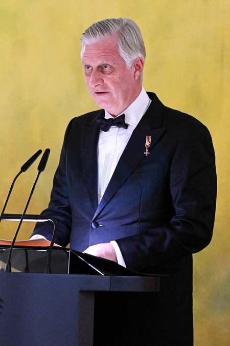 Le roi Philippe de Belgique et la reine Mathilde lors d'un dîner d'état à Berlin offert par Frank-Walter Steinmeier, président de l'Allemagne le 5 décembre 2023. Le couple royal de Belgique est en visite d'état en Allemagne pour trois jours. © Frederic Andrieu / Bestimage Belgium , Brussels, 05 december 2023 Her Majesty The King Philippe and the Queen Mathilde take part of the State visit in Federal Republic of Germany for three days. State banquet hosted by HE Frank-Walter Steinmeier, President of the Federal Republic of Germany, and Mrs. Elke Büdenbender, the First Lady / Pool Photonews