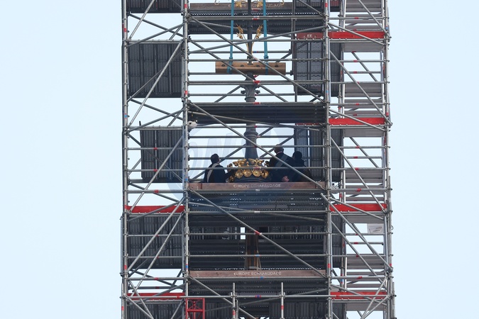 na szczycie iglicy katedry Notre-Dame zamontowano krzyż