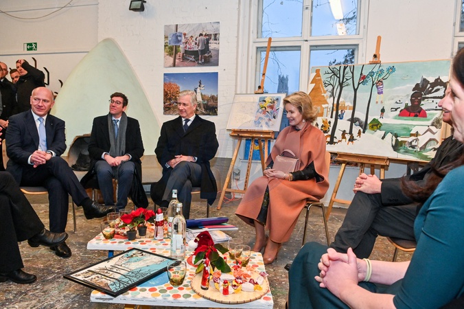 Le roi Philippe et la reine Mathilde de Belgique en visite au centre culturel "S27 - Kunst und Bildung" à Berlin, à l'occasion de leur voyage officiel de trois jours en Allemagne