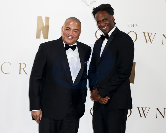 Steven Adams and Theo Dumont at The Crown Finale Celebration at Royal Festival Hall in Waterloo, London, United Kingdom on 5 December 2023., Credit:Cat Morley / Avalon