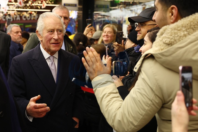 LONDON, ENGLAND - DECEMBER 7: King Charles III visits Ealing Broadway Shopping Centre to tour the Christmas Market, meet local business owners and speak to recipients of The King's Award for Voluntary Service on December 7, 2023 in London, England., Credit:Peter Nicholls / Avalon