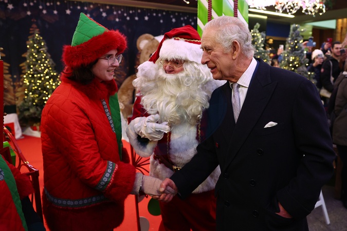 LONDON, ENGLAND - DECEMBER 7: King Charles III visits Ealing Broadway Shopping Centre to tour the Christmas Market, meet local business owners and speak to recipients of The King's Award for Voluntary Service on December 7, 2023 in London, England., Credit:Peter Nicholls / Avalon