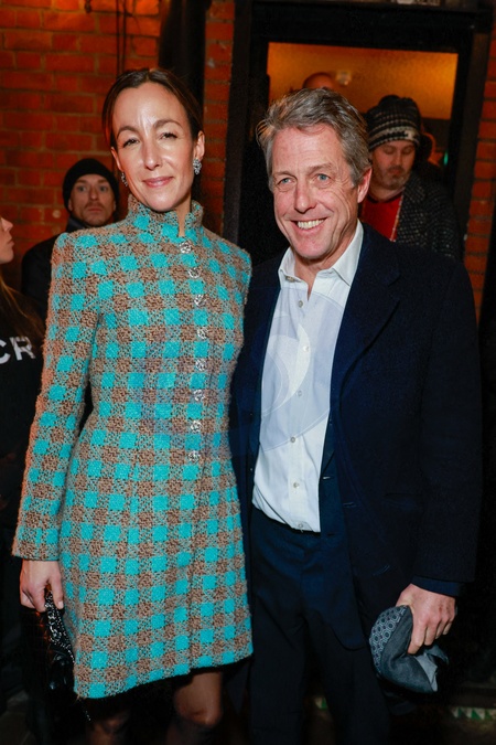 Hugh Grant et sa femme Anna Elisabet Eberstein - Front row du défilé Chanel collection 2023/24 des Métiers d'art à Manchester, Royaume Uni, le 7 décembre 2023. Chanel organise son prochain défilé Métiers d'Art en décembre à Manchester, dernière étape de la tournée annuelle de cette collection unique, qui a déjà eu lieu à Tokyo, Strasbourg, Rome, New York et Shanghai. La maison n'a pas révélé le lieu exact du défilé à Manchester, dans le nord de l'Angleterre qui a bâti sa richesse sur l'industrie du coton et du textile au XIXe siècle. La maison de couture parisienne dévoile sa collection 2023/24 des Métiers d'art. Il s'agit du premier défilé de la marque en Angleterre depuis la collection "Paris-Londres" de Karl Lagerfeld, inspirée par Amy Winehouse, en décembre 2009. © Olivier Borde/Bestimage Celebs attend the CHANEL Metiers D'Art Show in Manchester, UK, on December 07, 2023.