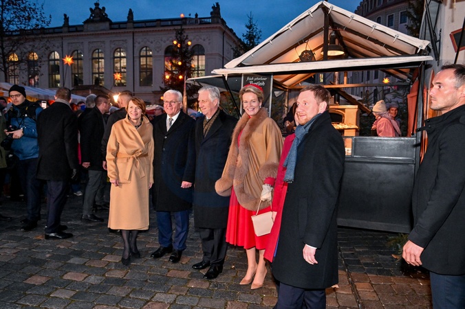 krol Philippe krolowa Mathilde Frank-Walter Steinmeier zona Elke na Jarmarku Bozenarodzeniowym w Dreznie