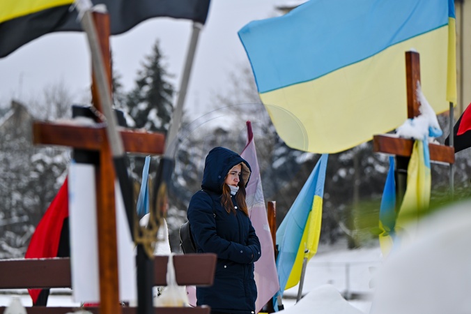 LVIV, UKRAINE - DECEMBER 6, 2023 - A woman stands among the graves at the Lychakiv Cemetery during a ceremony in remembrance of the heroes who perished in the fight for a free and independent Ukraine on the Day of the Armed Forces of Ukraine, Lviv, western Ukraine., Credit:Anastasia Smolienko / Avalon