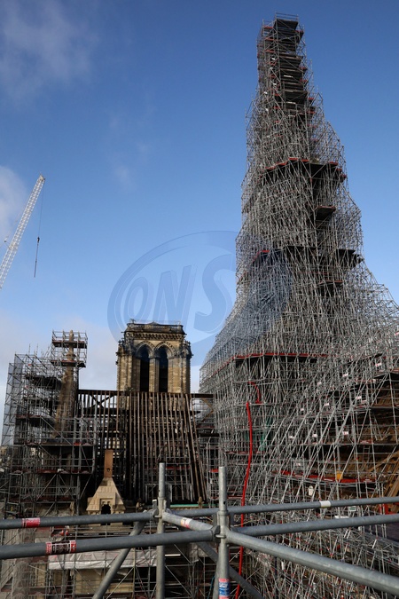 Illustration lors de la visite du président français sur le chantier de la Cathédrale Notre-Dame de Paris, France, le 8 décembre 2023. © Stéphane Lemouton/Bestimage Illustration during the French president's visit to the reconstruction site of Notre-Dame Cathedral in Paris, France,on December 8, 2023.
