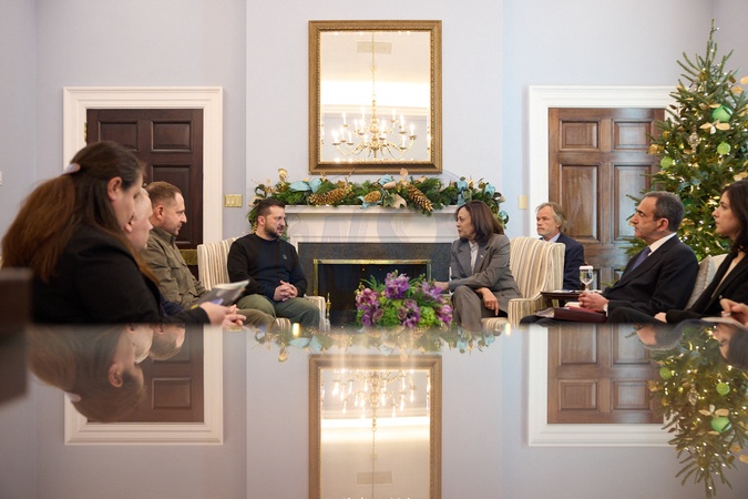 Le président ukrainien Volodymyr Zelensky a rencontré la vice-présidente américaine Kamala Harris à Washington, le 12 décembre 2023. Le chef de l'État a exprimé sa gratitude pour le soutien puissant des États-Unis à l'Ukraine, en particulier pour le renforcement de la défense aérienne et l'assistance en matière d'équipements énergétiques à la veille de la période hivernale difficile, qui ont renforcé la résilience de notre pays et de son système énergétique. Volodymyr Zelenskyy a informé Kamala Harris de la vision ukrainienne d'une paix juste basée sur la formule de paix et du processus de sa mise en œuvre. President of Ukraine Volodymyr Zelenskyy met with U.S. Vice President Kamala Harris. The Head of State expressed gratitude for the powerful support for Ukraine from the United States, particularly for bolstering air defense and assistance with energy equipment on the eve of the difficult winter period, which enhanced the resilience of our country and its energy system. Volodymyr Zelenskyy informed Kamala Harris about Ukraine's vision of a just peace based on the Peace Formula and the process of its implementation. December 12th, 2023.
