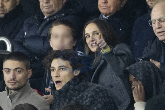 Natalie Portman, son fils Aleph - Les célébrités assistent au match de football PSG - Nantes (2 - 1) au Parc des Princes à Paris, le 9 décembre 2023. © Cyril Moreau / Bestimage Celebrities attend the PSG - Nantes (2 - 1) football match at the Parc des Princes in Paris, December 9, 2023.