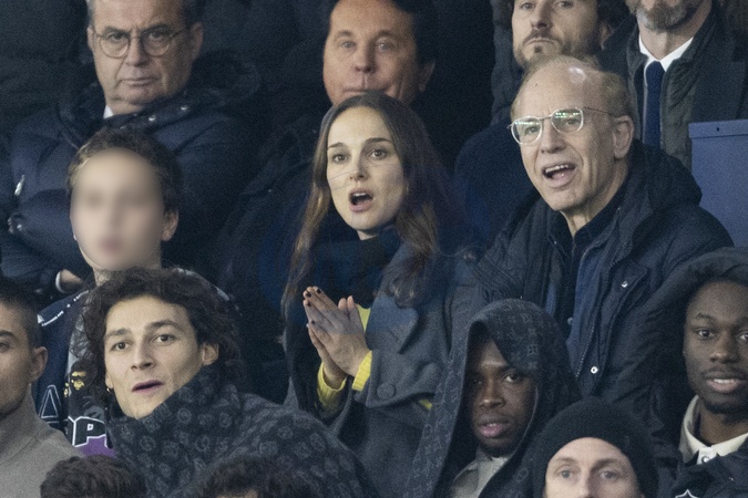 Natalie Portman son fils Aleph et son père Avner Hershlag - Les célébrités assistent au match de football PSG - Nantes (2 - 1) au Parc des Princes à Paris, le 9 décembre 2023. © Cyril Moreau / Bestimage Celebrities attend the PSG - Nantes (2 - 1) football match at the Parc des Princes in Paris, December 9, 2023.