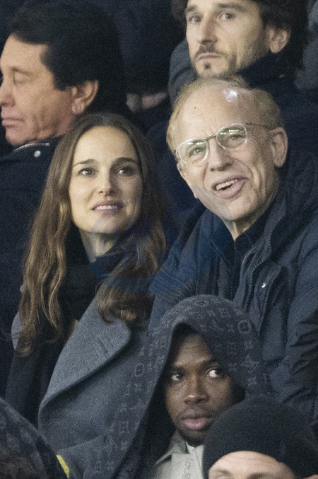 Natalie Portman et son père Avner Hershlag - Les célébrités assistent au match de football PSG - Nantes (2 - 1) au Parc des Princes à Paris, le 9 décembre 2023. © Cyril Moreau / Bestimage Celebrities attend the PSG - Nantes (2 - 1) football match at the Parc des Princes in Paris, December 9, 2023.