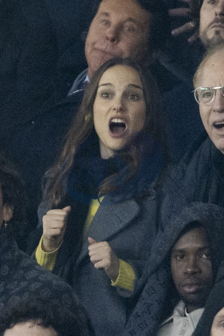 Natalie Portman - Les célébrités assistent au match de football PSG - Nantes (2 - 1) au Parc des Princes à Paris, le 9 décembre 2023. © Cyril Moreau / Bestimage Celebrities attend the PSG - Nantes (2 - 1) football match at the Parc des Princes in Paris, December 9, 2023.