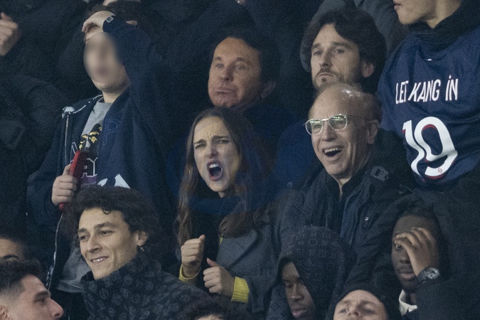 Natalie Portman son fils Aleph et son père Avner Hershlag - Les célébrités assistent au match de football PSG - Nantes (2 - 1) au Parc des Princes à Paris, le 9 décembre 2023. © Cyril Moreau / Bestimage Celebrities attend the PSG - Nantes (2 - 1) football match at the Parc des Princes in Paris, December 9, 2023.