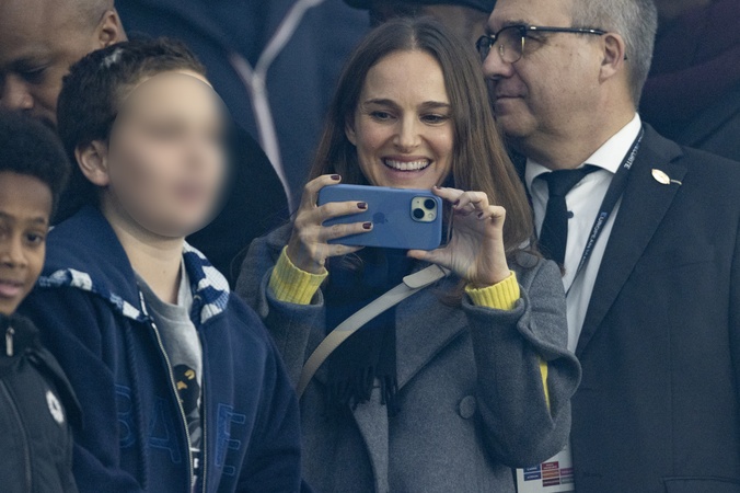 Natalie Portman, son fils Aleph - Les célébrités assistent au match de football PSG - Nantes (2 - 1) au Parc des Princes à Paris, le 9 décembre 2023. © Cyril Moreau / Bestimage Celebrities attend the PSG - Nantes (2 - 1) football match at the Parc des Princes in Paris, December 9, 2023.