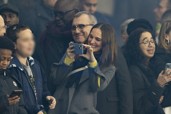 Natalie Portman, son fils Aleph - Les célébrités assistent au match de football PSG - Nantes (2 - 1) au Parc des Princes à Paris, le 9 décembre 2023. © Cyril Moreau / Bestimage Celebrities attend the PSG - Nantes (2 - 1) football match at the Parc des Princes in Paris, December 9, 2023.