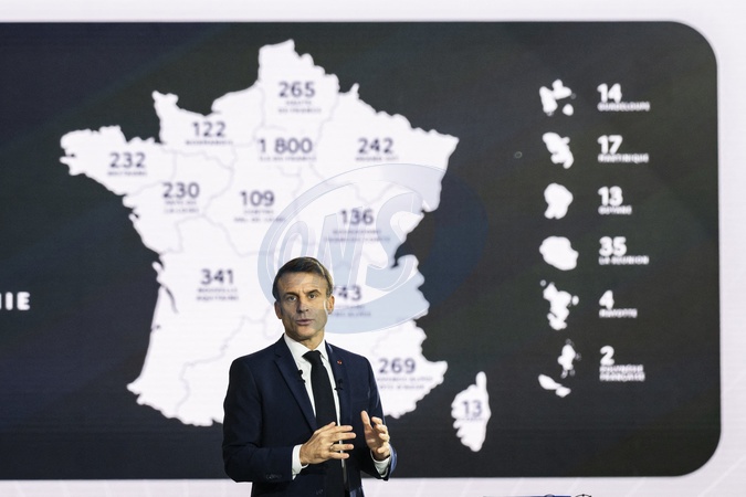 Le président Emmanuel Macron visite le site de Airbus à Toulouse à l'occasion des deux ans du plan d'investissement France 2030