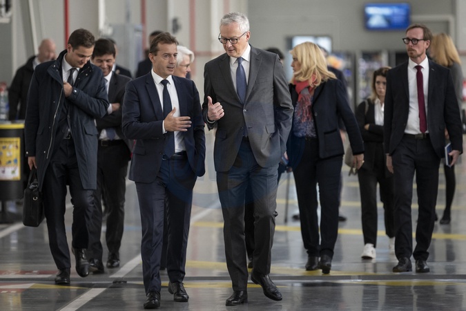 Le président Emmanuel Macron visite le site de Airbus à Toulouse à l'occasion des deux ans du plan d'investissement France 2030 le 11 décembre 2023. © Eliot Blondet / Pool / Bestimage CEO of Airbus Guillaume Faury speaks with French Economy Minister Bruno Le Maire during a french president visit to mark the two years of the France 2030 investment plan at the Airbus site in Toulouse, south-western France, on December 11, 2023.