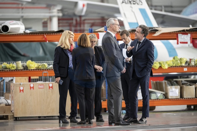 Le président Emmanuel Macron visite le site de Airbus à Toulouse à l'occasion des deux ans du plan d'investissement France 2030 le 11 décembre 2023. © Eliot Blondet / Pool / Bestimage French Economy Minister Bruno Le Maire during a french president visit to mark the two years of the France 2030 investment plan at the Airbus site in Toulouse, south-western France, on December 11, 2023.