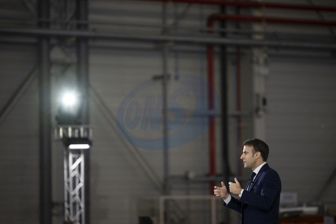 Le président Emmanuel Macron visite le site de Airbus à Toulouse à l'occasion des deux ans du plan d'investissement France 2030